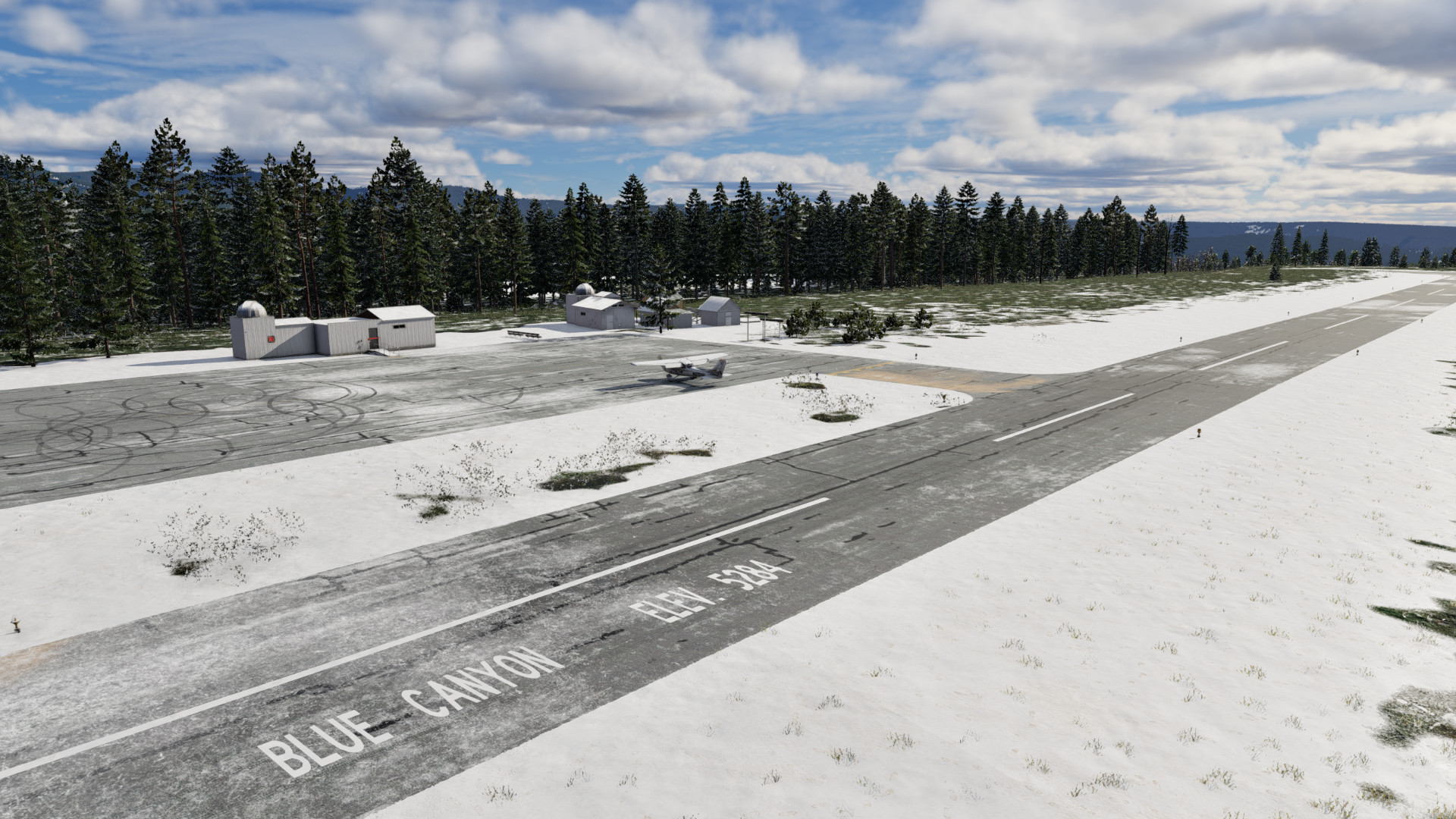 This rendition of KBLU is one of our most detailed sceneries yet, based on on-site photographs, ensuring maximum accuracy! Blue Canyon Nyack also features highly detailed buildings with nearly photoreal textures, custom, realistic vegetation that changes with the season, and highly realistic and detailed ground textures. This highly detailed scenery, paired with the exhilarating approach, make KBLU a fantastic stop on any Northern California GA adventure!